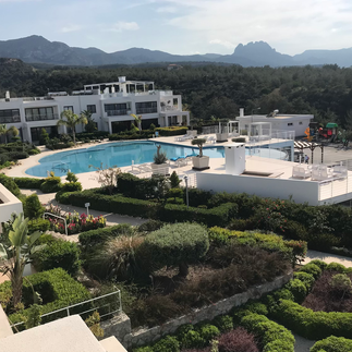 Vårt valg ble i et helt nytt prosjekt, med beliggenhet mot fjellet men allikavel bare 700 meter til stranden. Vi kunne boltre oss i Nord-Kypros fineste hage, 2 basseng, treningssenter og Restaurant.